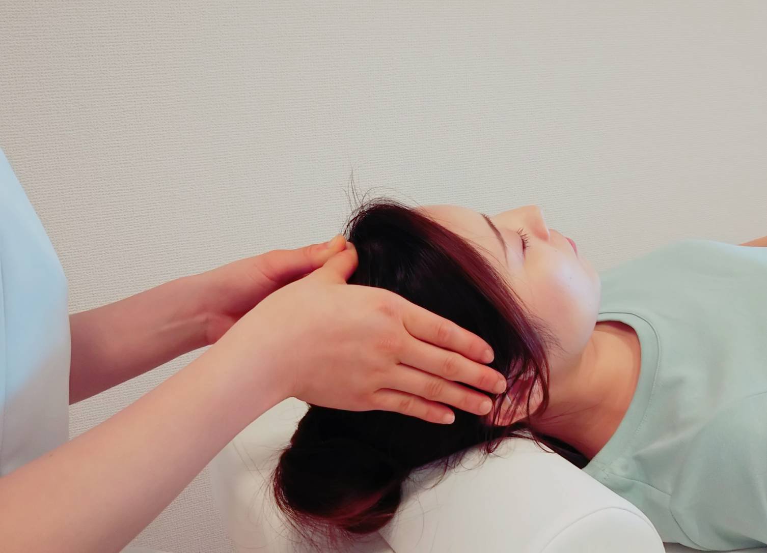 水やオイルを使わずに頭や顔、目の周りをゆっくり&じっくりほぐしていきます。