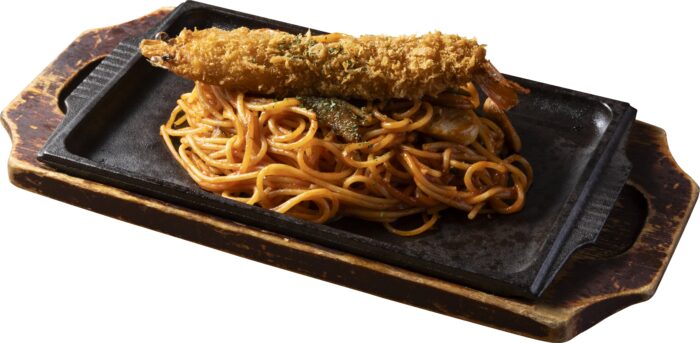 当店名物のオリジナル生ソーセージを使ったナポリタンは、鉄板の上で焼き上げる熱々の美味しさ。