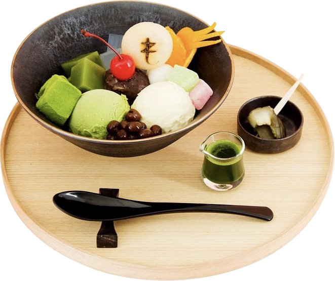 抹茶ムース、2種のアイス、抹茶ようかんと抹茶好きにはたまらない夏の逸品。