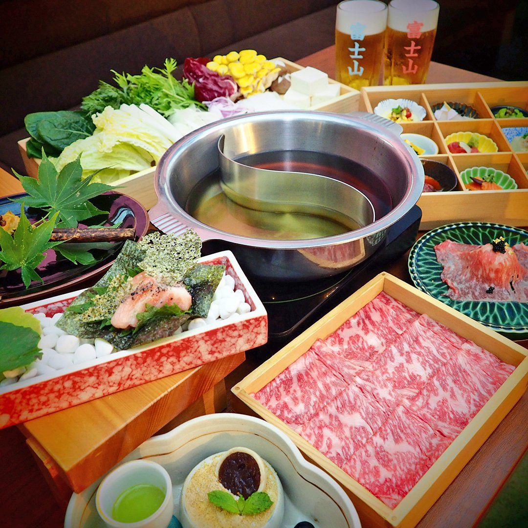 厳選和牛で食べるしゃぶしゃぶ・すき焼のコースメニュー。