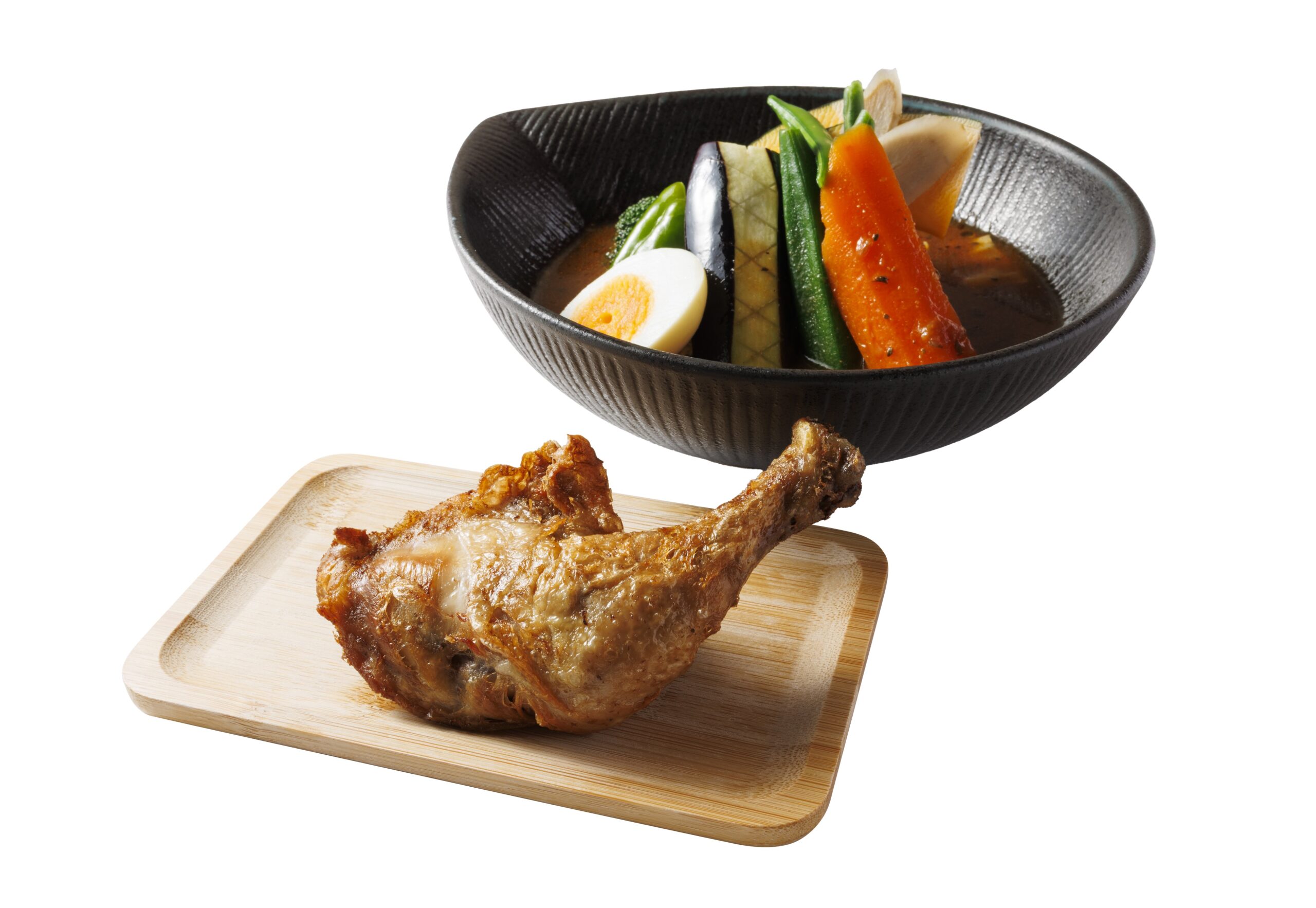 いつものカレーに、パリパリに揚げたチキンレッグをプラスすると、クリスマステイストに!